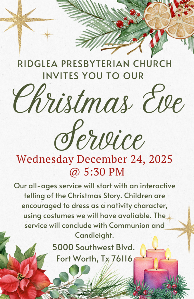 Ridglea Presbyterian church is an intergenerational and inclusive community of believers, who serve God and their community in various ways throughout the year! Engaging programming and heartfelt teaching is waiting for you and your family.